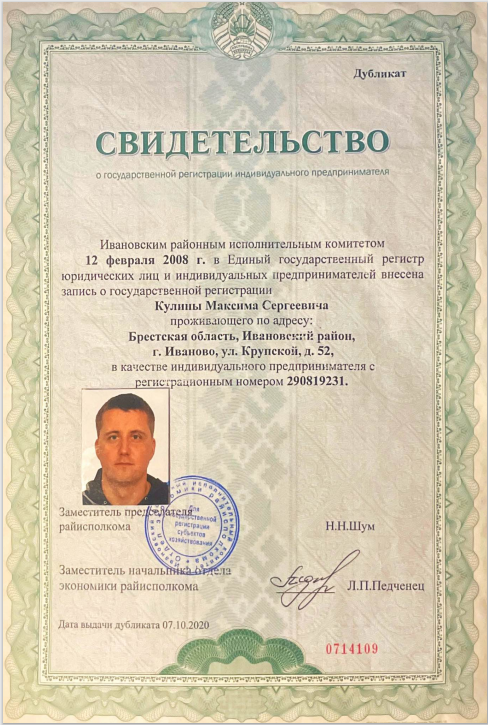 Свидетельство о регистрации
